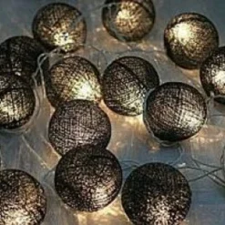 1 Set Of 20 LED Black 5cm Cotton Ball Battery Powered String Lights Christmas Gift Home Wedding Party Bedroom Decoration Outdoor Indoor Table Centrepiece