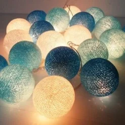 1 Set Of 20 LED Blue 5cm Cotton Ball Battery Powered String Lights Christmas Gift Home Wedding Party Boys Bedroom Decoration Indoor Table Centrepiece