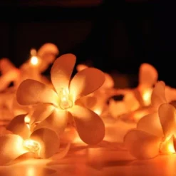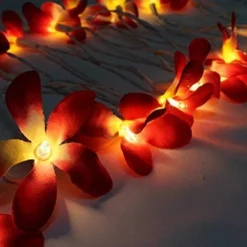 1 Set Of 20 LED Orange Frangipani Flower Battery String Lights Christmas Gift Home Wedding Party Decoration Outdoor Table Garland Wreath