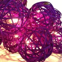 1 Set Of 20 LED Cassis Purple 5cm Rattan Cane Ball Battery Powered String Lights Christmas Gift Home Wedding Party Bedroom Decoration Table Centrepiece