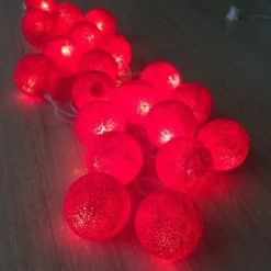 1 Set Of 20 LED Red 5cm Cotton Ball Battery Powered String Lights Christmas Gift Home Wedding Party Bedroom Decoration Outdoor Indoor Table Centrepiece